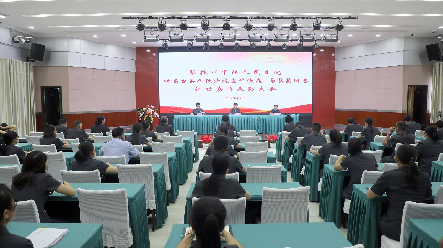 为激发全市法院干警攻坚克难的斗志和干事创业的热情,7月28日至8月1日,张掖中院党组成员、政治部主任王彬带队赴甘州区法院、高台县法院、山丹县法院、民乐县法院和肃南县法院,对全市法院记三等功的集体、个人和嘉奖个人“送奖上门”“送奖到岗”。